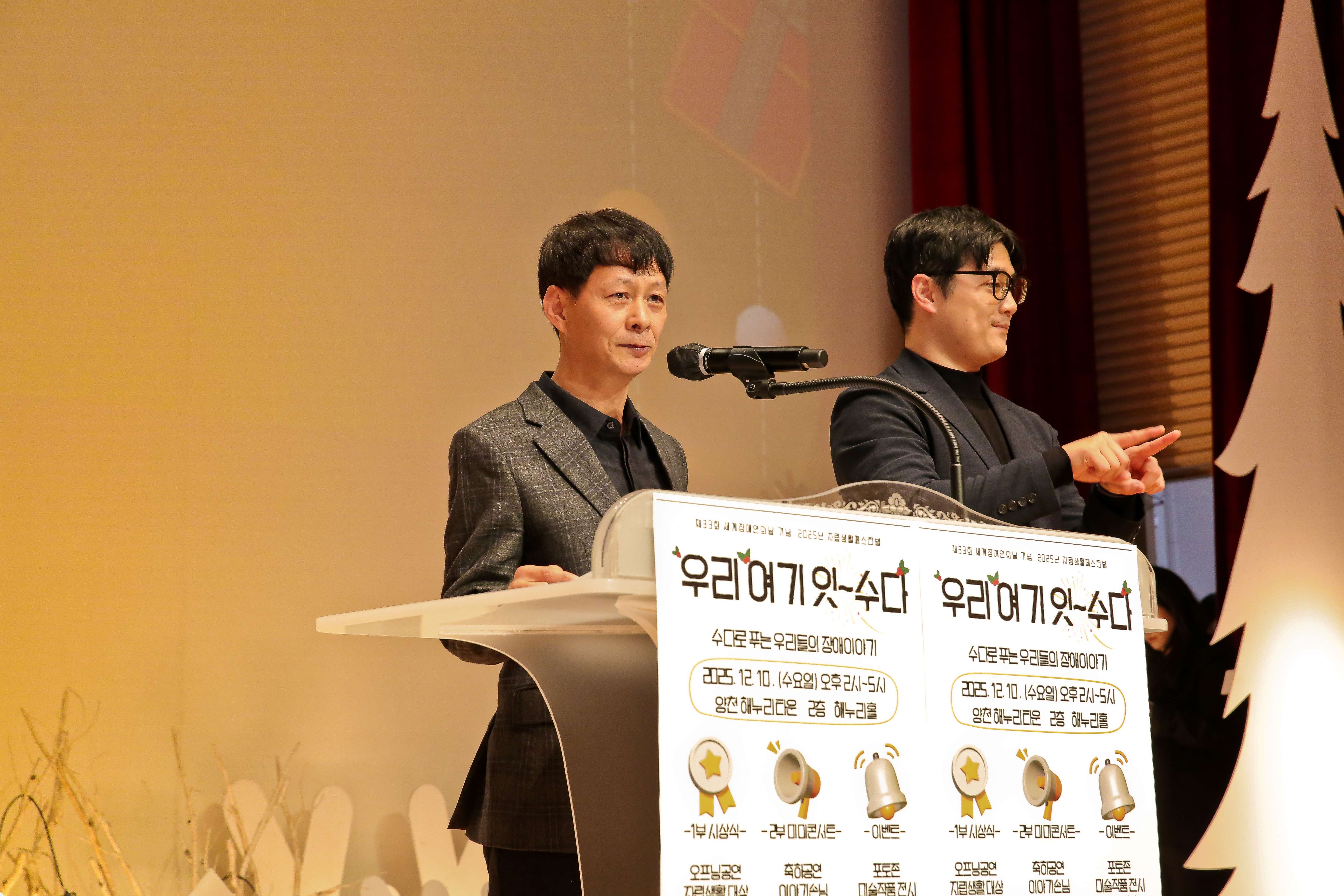 지난 12월 10일(수), 양천해누리타운 해누리홀에서 제33회 세계장애인의 날 기념 ‘2025년 자립생활페스티벌 「우리 여기 잇~수다!」가 열렸습니다.